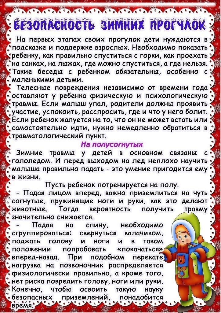 Открытые окна; незаблокированные двери; остановки в незнакомых местах, в автомобиле садите детей на самые безопасные места (середину или правую часть заднего сиденья) и обязательно пристёгивайте ребёнка ремнями безопасности или специальными удерживающими устройствами согласно возрасту вашего ребёнка. Не разрешайте ребёнку стоять между сиденьями, выглядывать из окна, выставлять руки, снимать блок с двери, трогать ручки во время движения. Выходить из машины ребёнку можно только после взрослого.