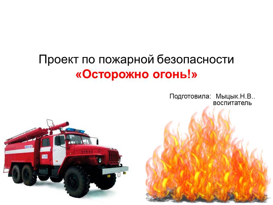 «Осторожно огонь» в средней группе проект среднесрочный Дата: ( с 01.04 2020г. по 01 06. 2020г. ) Руководитель проекта: Мыцык Наталья Викторовна. Творческая группа (члены) проекта: Квичастая Ольга Владимировна, Горбулева Лилия Владимировна, Нуйкина Ольга Владимировна, Методическое сопровождение: Бондяева Елизавета Викторовна