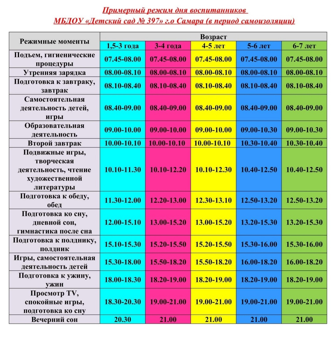 Уважаемые родители! Большое значение для здоровья и физического развития детей, имеет режим дня дома в период самоизоляции. Постоянное время для еды, сна, игр и занятий очень важно для дошкольника.