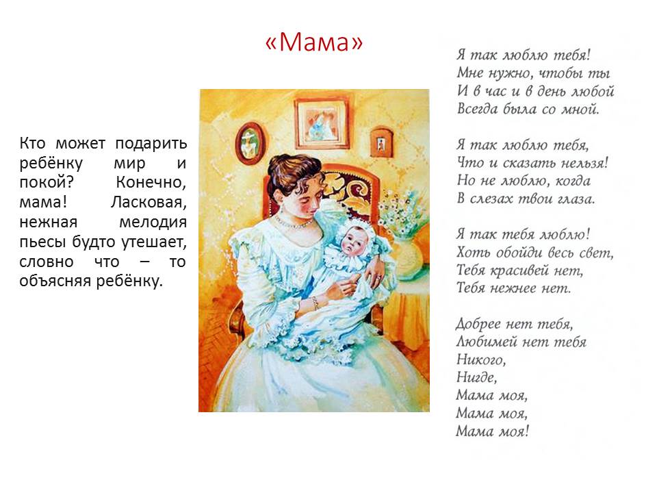 Уважаемые родители, продолжаем работать над проектом «Музыкальный островок детства». Предлагаю остановиться на пяти пьесах, представленных в презентации. Справа от картинок на слайдах представлен стихотворный текст, который можно пропеть под данную мелодию (курсив). Если ребёнок прослушает мелодию несколько раз, можно будет подставить слова. Только пропев мелодию, ребёнок запомнит её и, конечно, полюбит надолго!