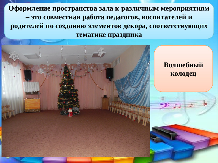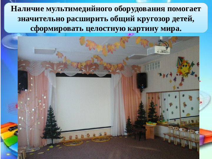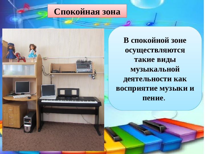 РППС музыкального зала спроектирована в соответствии с требованиями к построению развивающей предметно-пространственной среды и принципами ФГОС ДО: содержательно-насыщенна, трансформируема, полифункциональна, вариативна, доступна и безопасна.