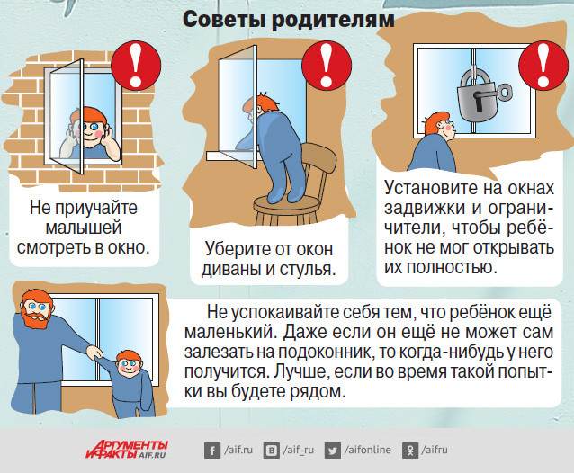 1 правило: Не оставлять окно открытым, поскольку достаточно отвлечься на секунду, которая может стать последним мгновением в жизни ребенка или искалечить ее навсегда.