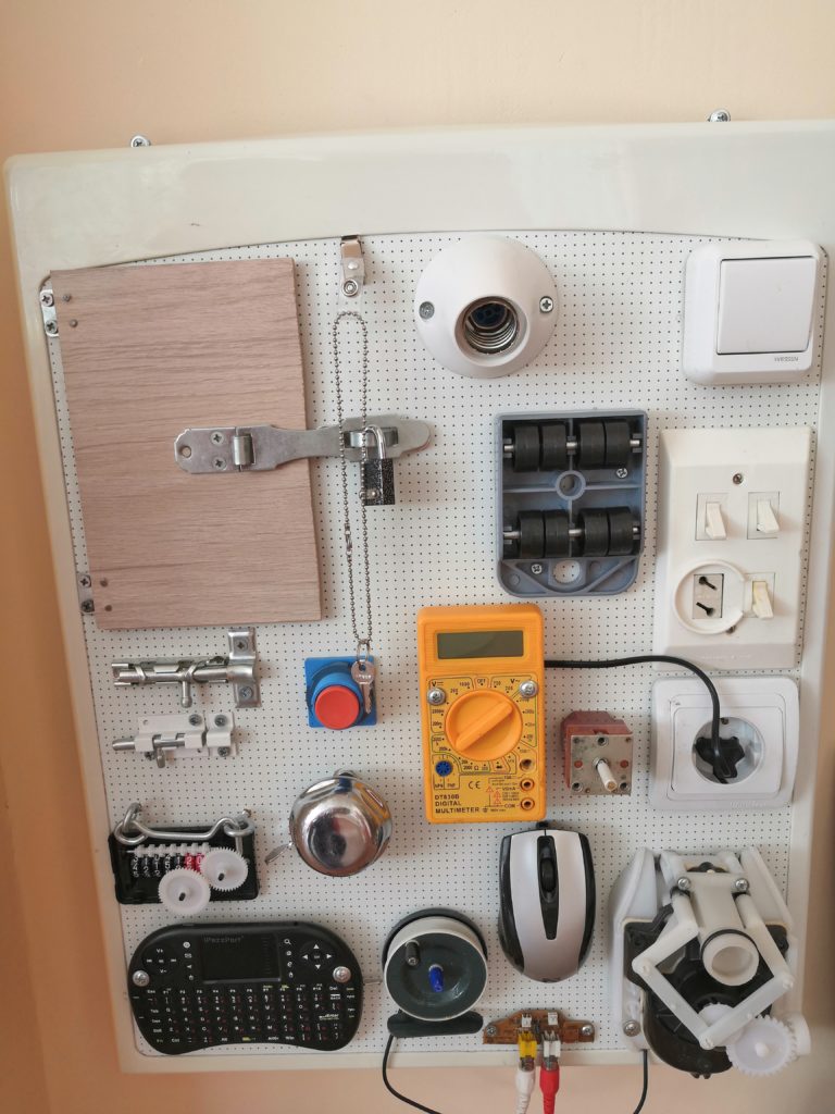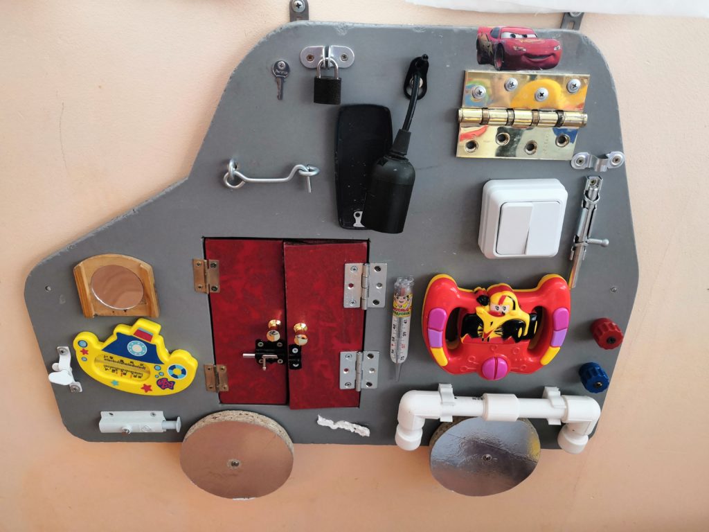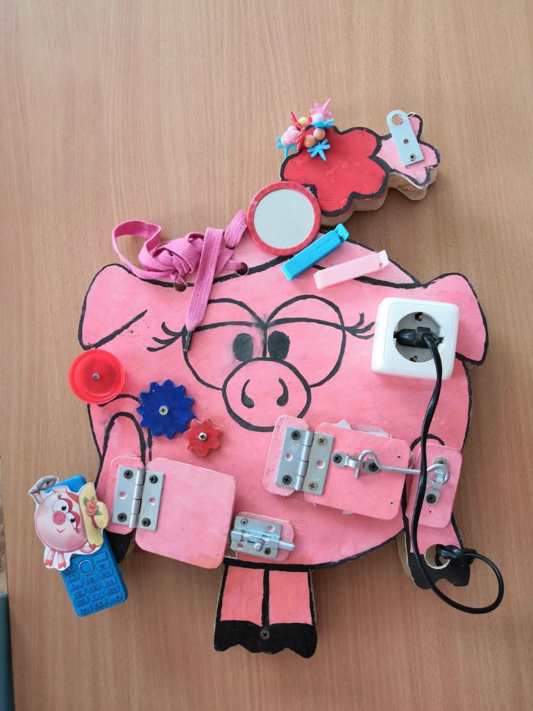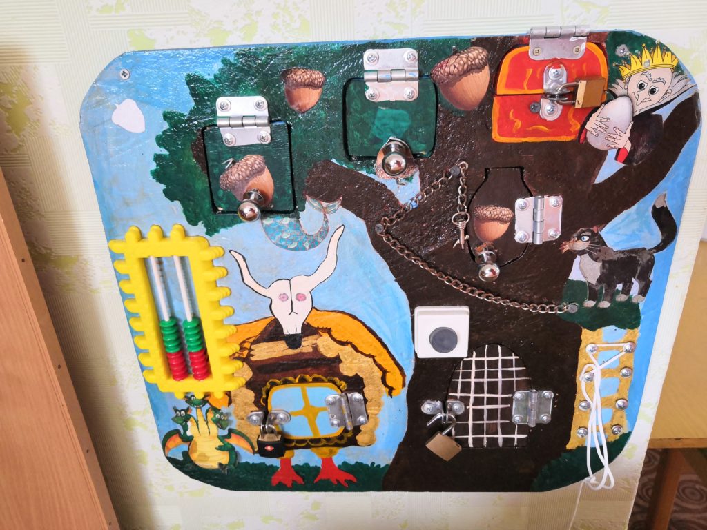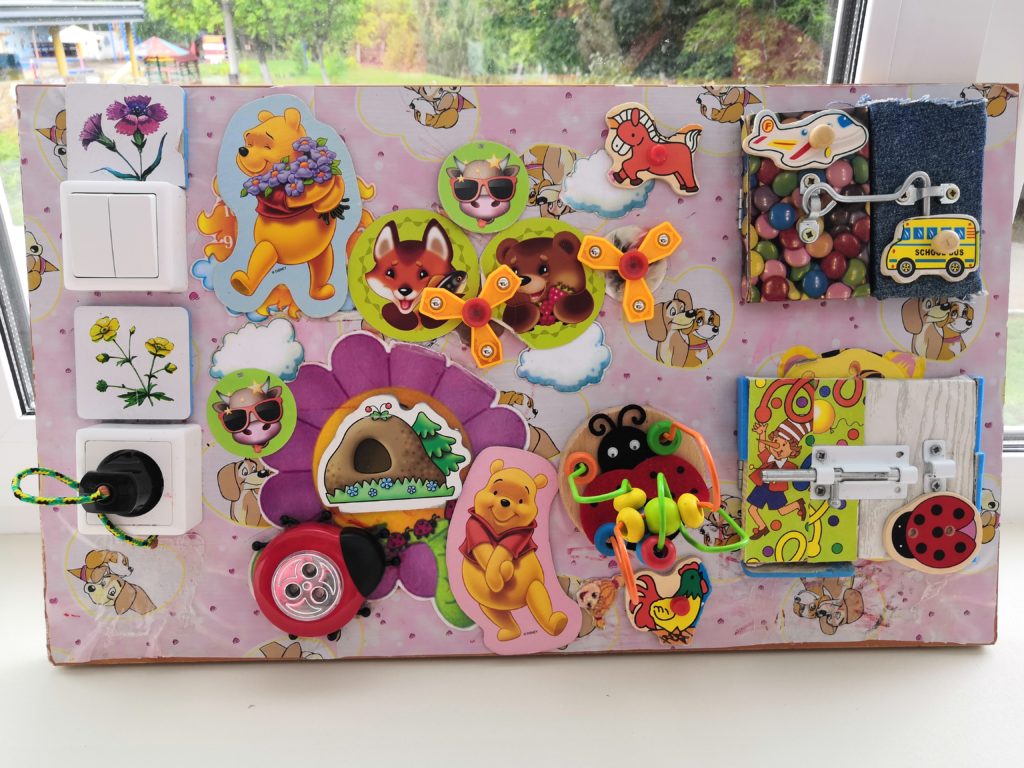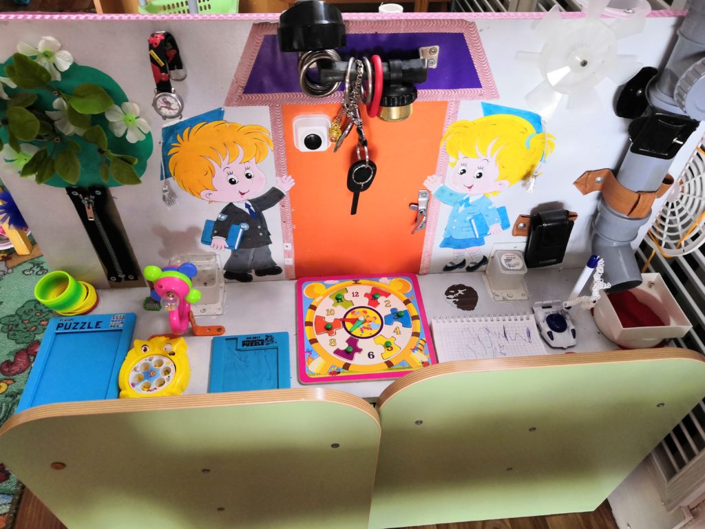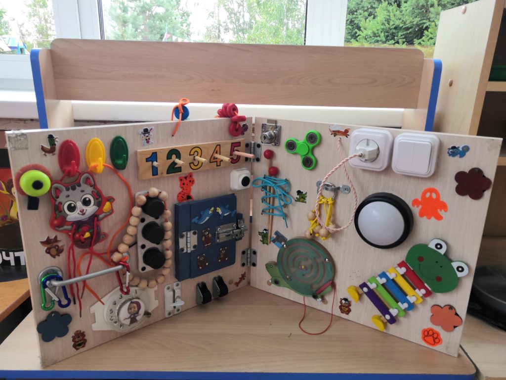 В рамках реализации годового плана в ДОУ прошел смотр-конкурс на лучшую разработку дидактического пособия как средства развития ребенка в технологии «Бизиборд». Вот что у нас получилось…
