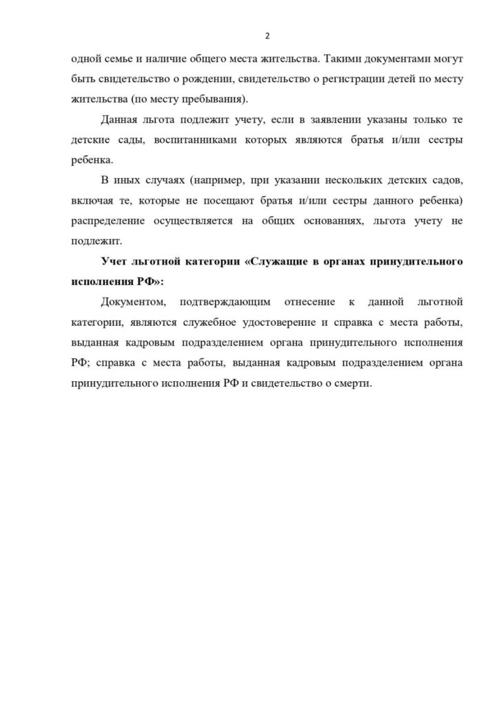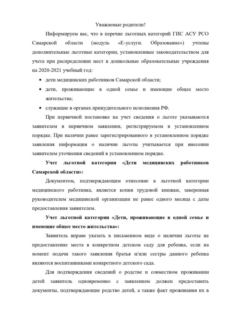 — наличия у родителей (законных представителей) ребенка права на внеочередное, первоочередное и преимущественное предоставление места для ребенка в МОО в соответствии с действующим федеральным и региональным законодательством;