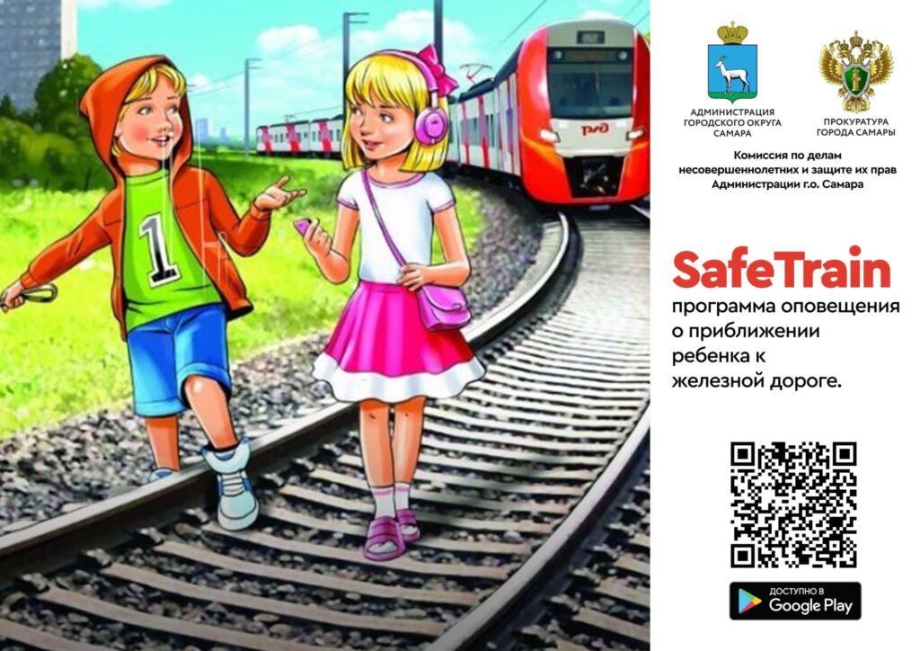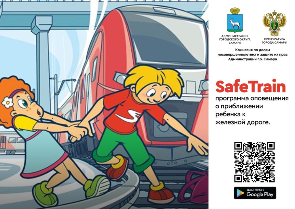 Программа «SafeTrain» QR код блокирует музыку, видео, при попадании в опасную зону, предупреждает пользователя о приближении к опасной зоне, предупреждает родителей об отключении ребенком приложения, геолокации, попадании в опасную зону и т.д.