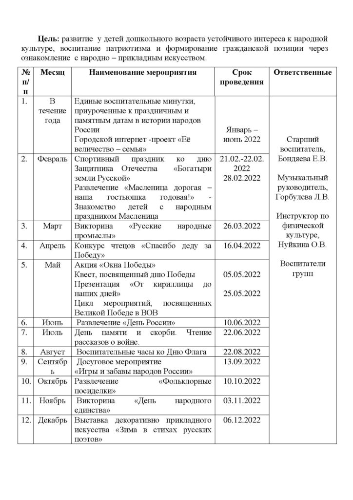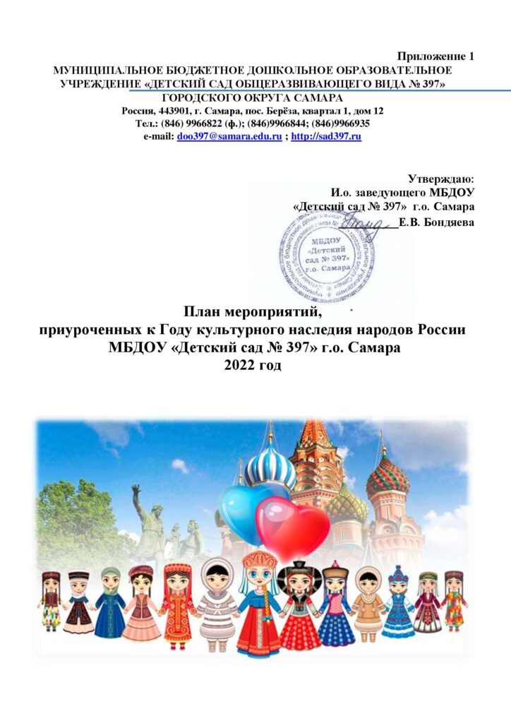 План мероприятий, приуроченных к Году культурного наследия народов России МБДОУ «Детский сад № 397» г.о. Самара 2022 год