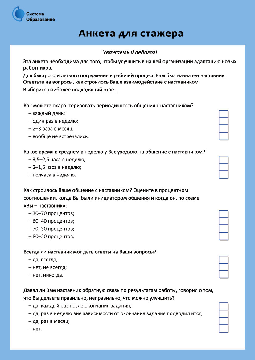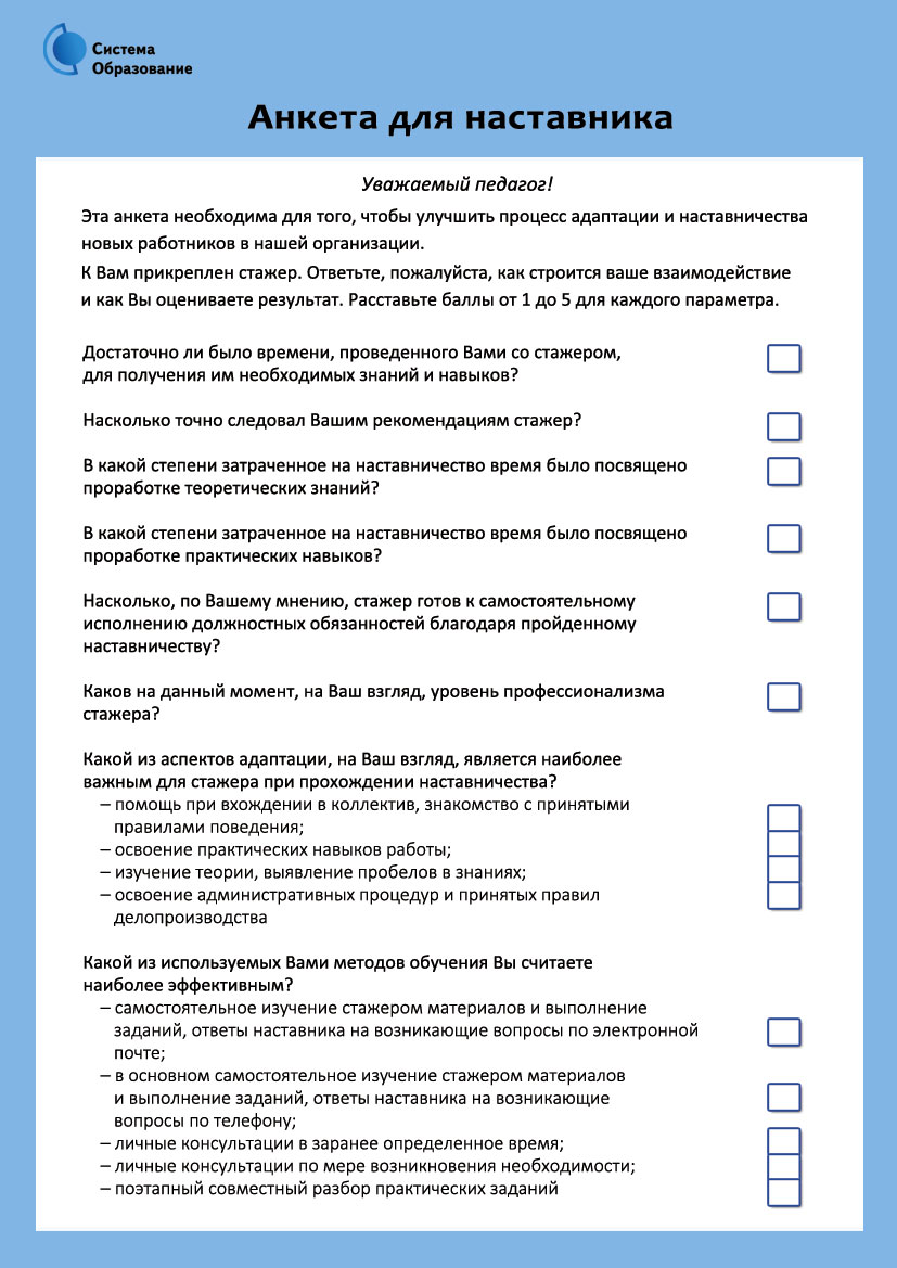 - Анкета для наставника