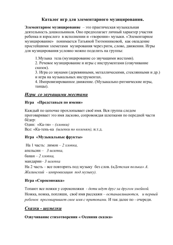 Тема: Музыкальное развитие детей дошкольного возраста посредством элементарного музицирвания